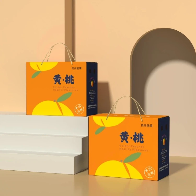 活动前期博雅艺创团的队员为平扒村黄桃设计了 一款产品包装。包装采用橙蓝撞色设计,搭配简约线条描绘的黄桃,使包装更加大气简约吸引眼球。新包装不仅色彩明快,视觉清新,还注重实用性和环保性,既提升了产品的品牌辨识度,又助力村民增收。从田间到指间,每一处设计细节都凝结着队友们助农的初心与专业创意,展现队员为乡村振兴注入青春活力。