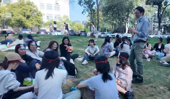 为缓解员工压力、促进班级交流,4月10日下午,2022级工艺与设计班和综合绘画班在校史馆前面的草地上联合举办了一场别开生面的心理主题班会——户外“心灵茶话会”, 活动以零食分享、趣味游戏为载体,通过轻松互动传递心理健康知识,帮助员工学会情绪调节。班主任喻颖老师和全体同学共同参与。